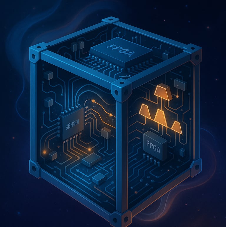 A diferencia de la mayoría de los sistemas de control que funcionan con programas almacenados en un microprocesador, este diseño fue implementado directamente en hardware, utilizando un FPGA (Field Programmable Gate Array). Los FPGA son chips que pueden reconfigurarse después de fabricados, lo que los convierte en herramientas poderosas para aplicaciones espaciales: son rápidos, eficientes y confiables frente a las radiaciones del espacio.